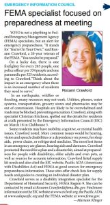 According to the latest US Census about 40% of the Leisure World Community have one or more disability. People with disabilities are two to four times more likely to be injured or killed in a natural disaster. The keys to effective disaster preparedness—be informed, make a plan and take action—apply to all of us, but people with access and functional needs or disabilities, should approach preparedness planning with additional considerations.